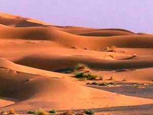 У большинства людей при слове «пустыня» возникает образ обширного пространства, покрытого пологими холмами золотистого песка (арабское слово «эрг» и означает «большие пески»). На самом деле менее четверти площади Сахары соответствует подобному описанию. Почти 80 процентов территории Сахары, одной из самых обширных пустынь мира, - это галечниковые равнины, бесплодные каменистые плато, безводные горы и солончаки, где путникам часто видятся миражи.