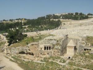 К югу от Гефсимании открывается участок древней Кедронской долины и обращенный к святому граду Иерусалиму склон Елеонской (Масличной) горы. Когда-то по дну долины струился поток, а теперь его узкое и глубокое ложе и склоны Елеонской горы представляют собой кладбище, на котором наслаиваются друг на друга гробницы разных времен и народов. Название долины связано с библейским пророчеством Страшного суда: именно здесь прозвучит грозная труба архангела, при звуках которой долина расширится, восставшие из своих могил грешники предстанут перед судом Господа, и огненная река потечет по Кедрону. Евреи и мусульмане указывают на Царскую долину (она носит еще и это название) как на место последнего суда, поэтому те и другие устроили здесь свои кладбища. Этот тысячелетний некрополь с древнейших времен существовал под названием гробы сынов людских.