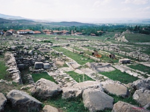 Сам город состоял из двух частей — верхней и нижней, разделенных каменной крепостной стеной. На высокой скале была сооружена цитадель. В верхнем городе располагались многоколонный царский дворец с большим парадным залом и храмы, посвященные различным богам. Самый значительный из храмов был сооружен в честь бога ветров и бурь. Он имел длинный внутренний двор, на который выходила колоннада, украшавшая зал святилища. В ярко освещенном помещении храма стояла статуя грозного божества.