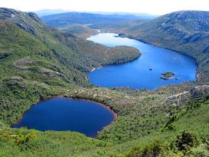 Самая высокая из этих вершин — Бен-Ломонд, поднимающая свой гребень на полтора километра над уровнем моря (по австралийским меркам это не так уж мало: выше Бен-Ломонда здесь только "австралийские Альпы" с высочайшей горой Австралии — Косцюшко). Многочисленные озера, дающие начало бурным порожистым рекам, придают тасманийскому пейзажу вполне альпийский облик. Почти в самом центре острова находится озер? Грейт-Лейк. Оно, как и расположенные по соседству озера Сент-Клер и Эко, служит одним из истоков лавной реки Тасмании — Деруэнта. Все эти водоемы скрыты в глубине гор, окружены дикими скалами с зазубренными гребнями и действительно очень похожи на шотландские или швейцарские озера.